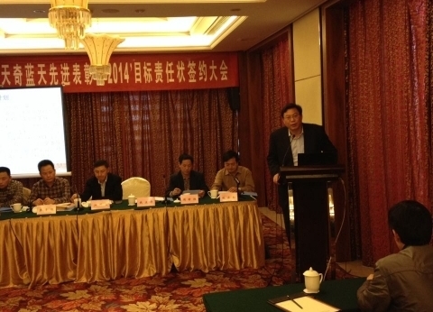 2014年3月17日下午2:00,2013’天奇藍(lán)天先進(jìn)表彰暨2014’年目標(biāo)責(zé)任簽約大會在逸頓國際大酒店召開。久違的陽光在這天格外燦爛,帶來一份好彩頭,給人希望和信心。