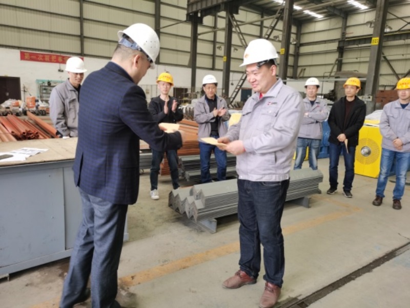 首先,由公司總經(jīng)理章愛前對(duì)三月份在“先進(jìn)班組”考核中優(yōu)勝的“許世艷班組”和“谷昆明班組”授予了先進(jìn)班組流動(dòng)紅旗和獎(jiǎng)金,并對(duì)2020年受股份公司表彰的姚中華、翟宏維、滕軍波、李文四名標(biāo)兵頒發(fā)榮譽(yù)證書和獎(jiǎng)金。章總還對(duì)在三月份節(jié)約材料專項(xiàng)工作中表現(xiàn)突出的周勇、李磊等六名同志頒發(fā)獎(jiǎng)金。