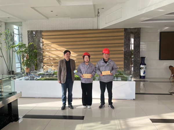 20231115日下午3時(shí),公司總經(jīng)理張啟明向受到表彰的周陵元、賀慧玲給予現(xiàn)金獎(jiǎng)勵(lì),并與他們合影留念。